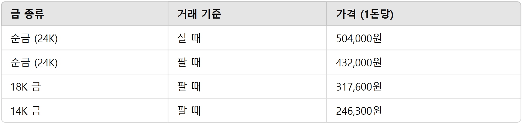1. 현재 금 팔 때 시세