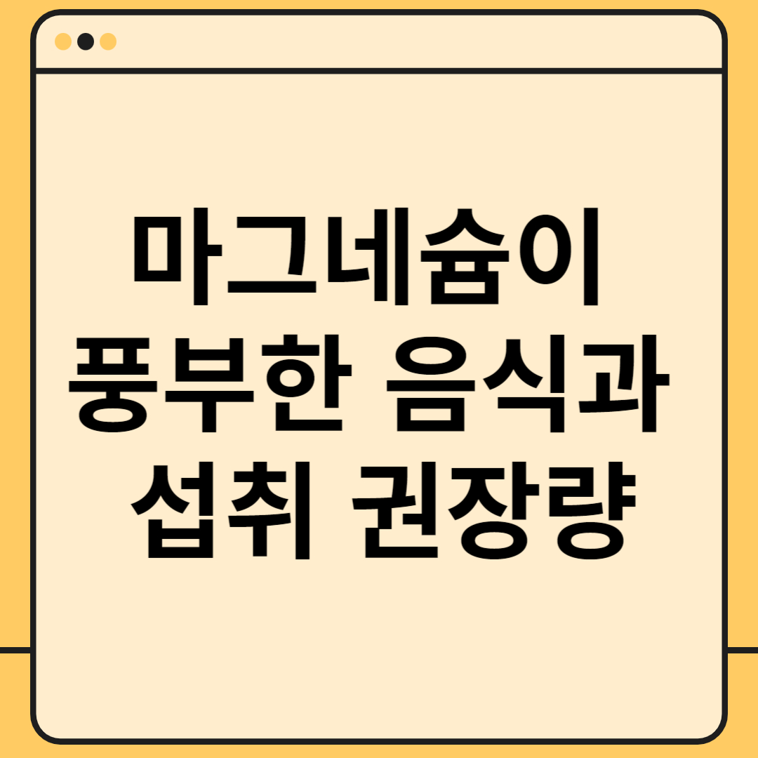 또한, 마그네슘의 하루 권장량을 확인하고, 필요 시 보충제를 통해 추가 섭취를 고려해 보세요.